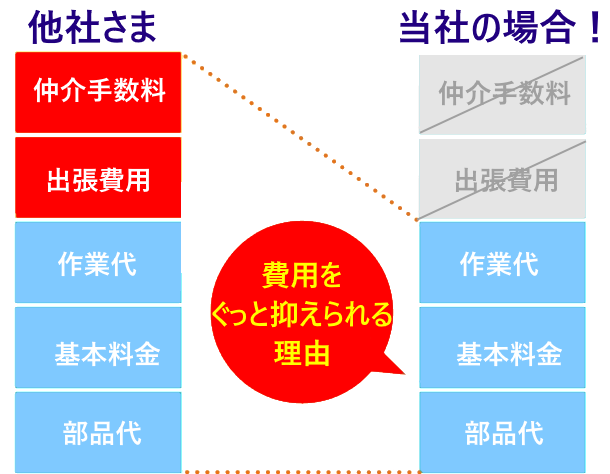 当社は仲介業者を一切挟まず、受付から作業完了まで一貫して自社で対応しておりますので仲介手数料が発生しておりません。