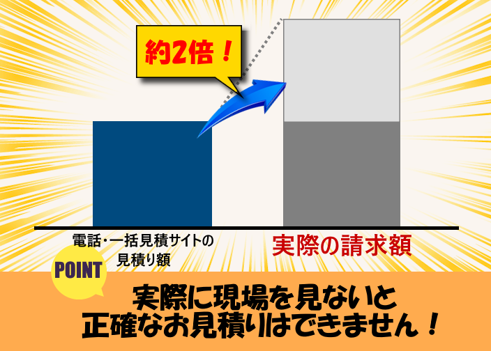 ※昨今、他の業者の中には見積金額よりも はるかに高額な金額を請求する業者が増、問題となっているのをご存じでしょうか。